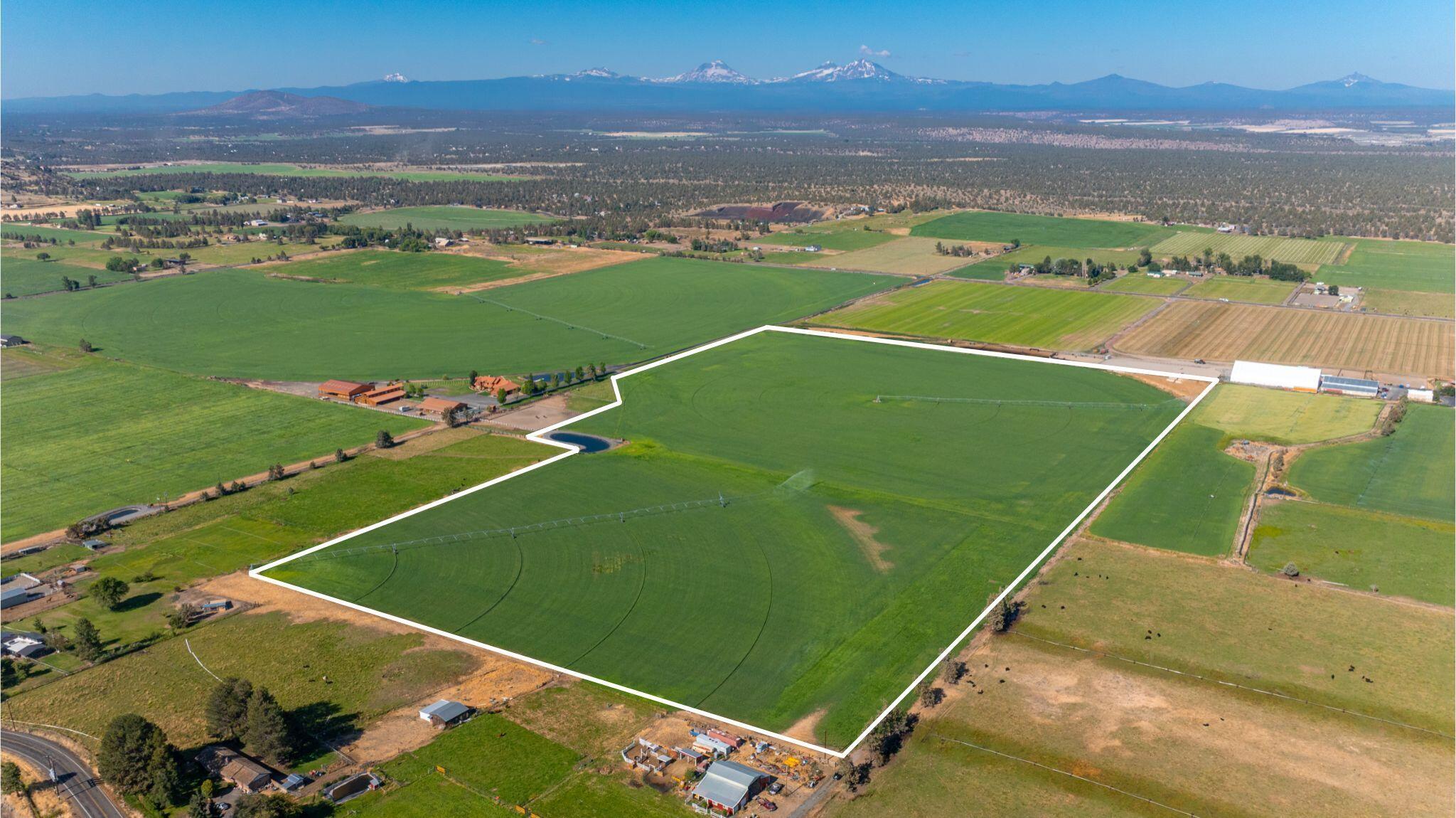 Stunning 56-acre property offering premier agricultural functionality with breathtaking Cascade Mountain views. Currently in high-yield hay production, this exceptional parcel includes 56 acres of COID water rights and produces approximately 350 tons of premium hay annually. Infrastructure is fully in place for efficient, modern farming: two center pivots, multiple hand lines, and a recently lined irrigation pond with newer pumps--all automated via Ag Sense for seamless operation. A Conditional Use Permit is secured, allowing you to build your dream home amidst full, unobstructed views of seven Cascade peaks.